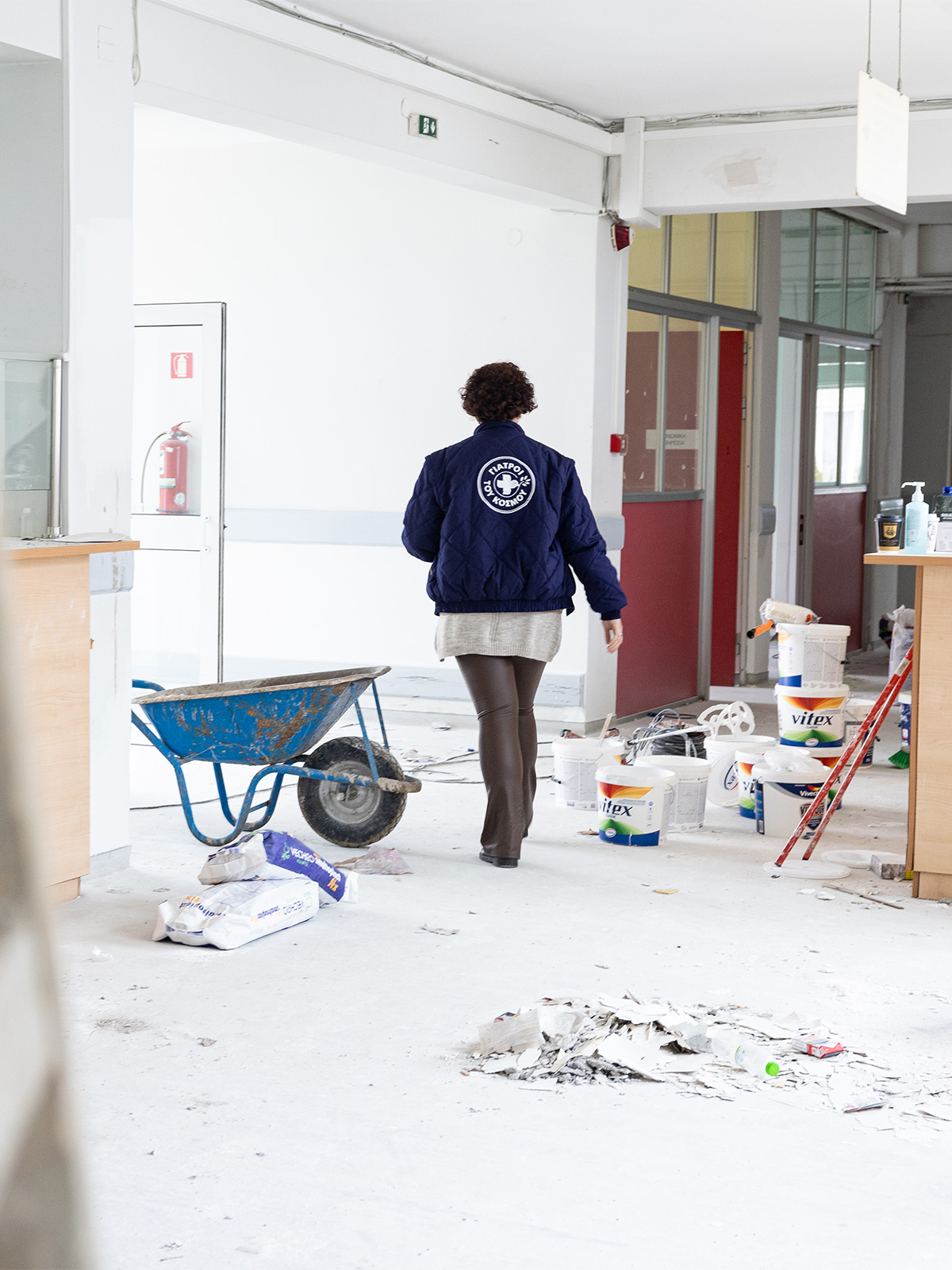 Εργασίες κατά την ανακαίνιση του δαπέδου του Κέντρου Υγείας Παλαμά